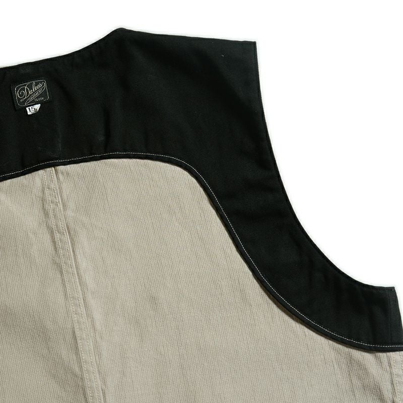 この型紙は、ダリーズのベストとして実績ある形状を基に肩回り・アームホールのフィット感を向上させたスタイリッシュな形状が特徴です。40代男性の体型に沿った肩傾斜、絞ったアームホール、身丈をダリーズシャツ企画に合わせ「タックイン無しで合わせるベスト」と謳った着丈に、シンチバックを追加したパターン形状です。