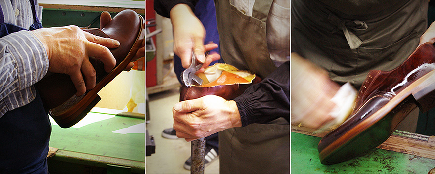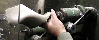 先ずは木型職人がフランス産メープルウッドを手彫りにて成形し、その後「ラスト」と呼ばれる型を作る。履き心地はもちろん、靴全体のバランスを司る靴創りの心臓とも言える。数回にわたる修正と微調整を繰り返し、やっと納得のいくカタチになったと自負するオリジナル木型。