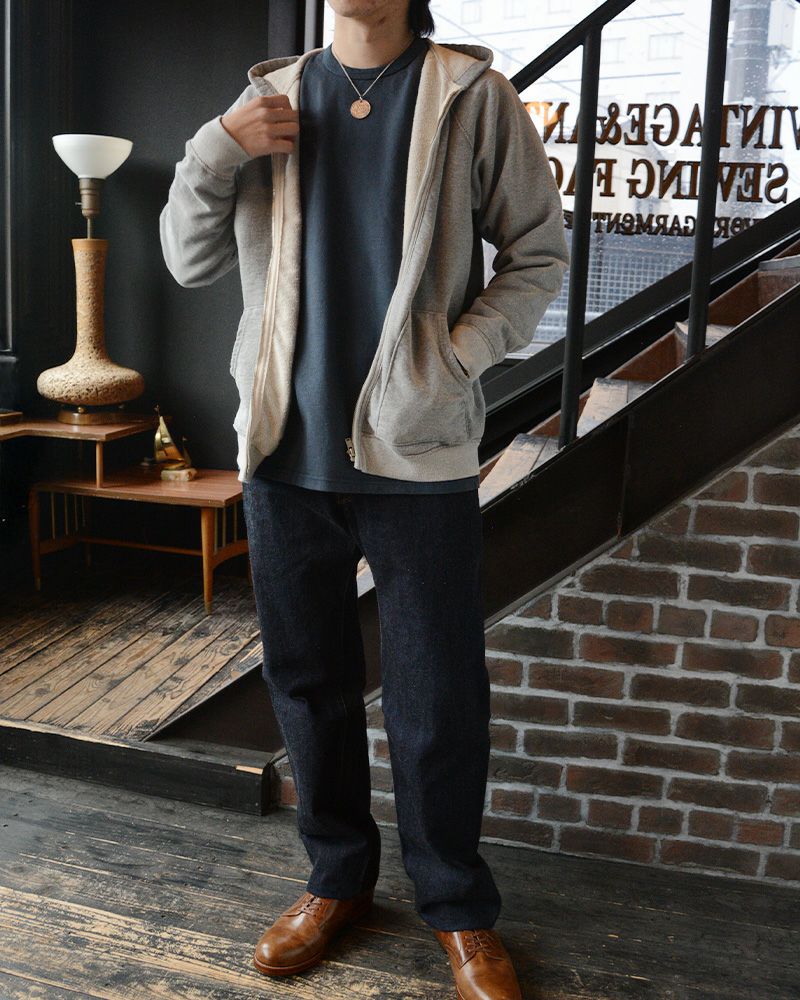 ヴィンテージを感じさせるスウェットのシンプルなアメカジコーデ